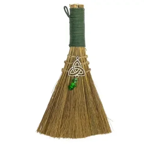Ce Balais Triquetra Green Aventurine est confectionné à la main avec des matériaux naturels et une pierre de Green Aventurine, reconnue pour ses vertus protectrices et énergétiques.